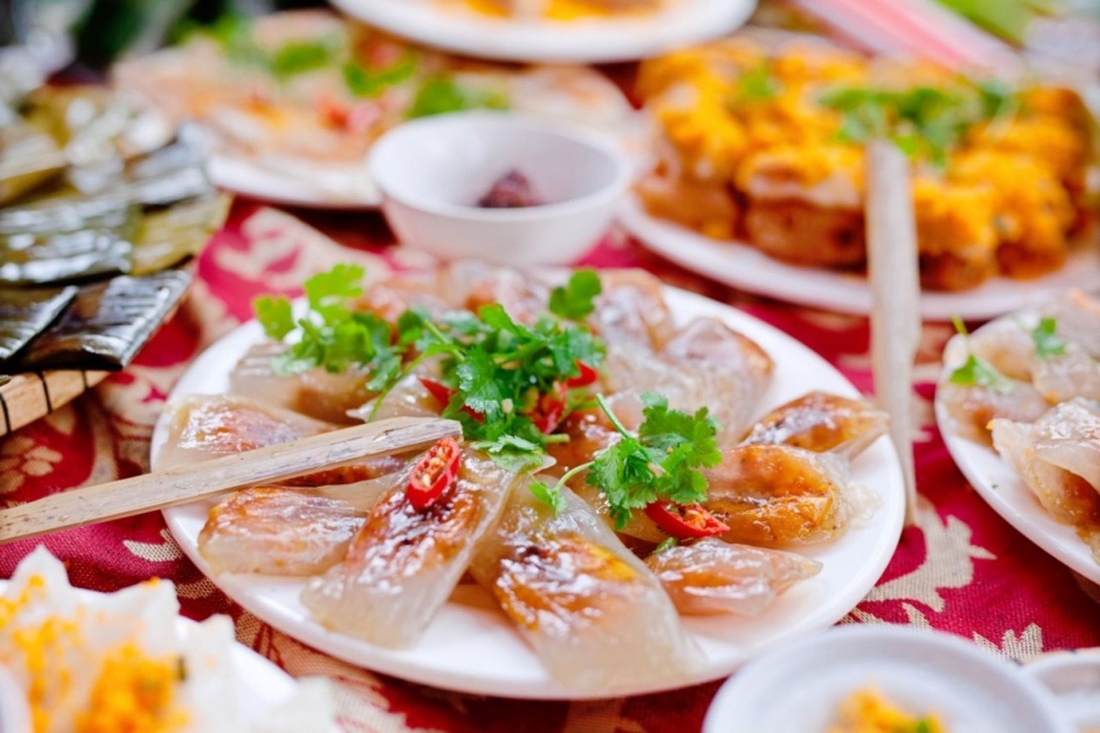 Bánh lọc: Bột lọc trong suốt, nhân tôm thịt, dẻo dai và đậm đà.