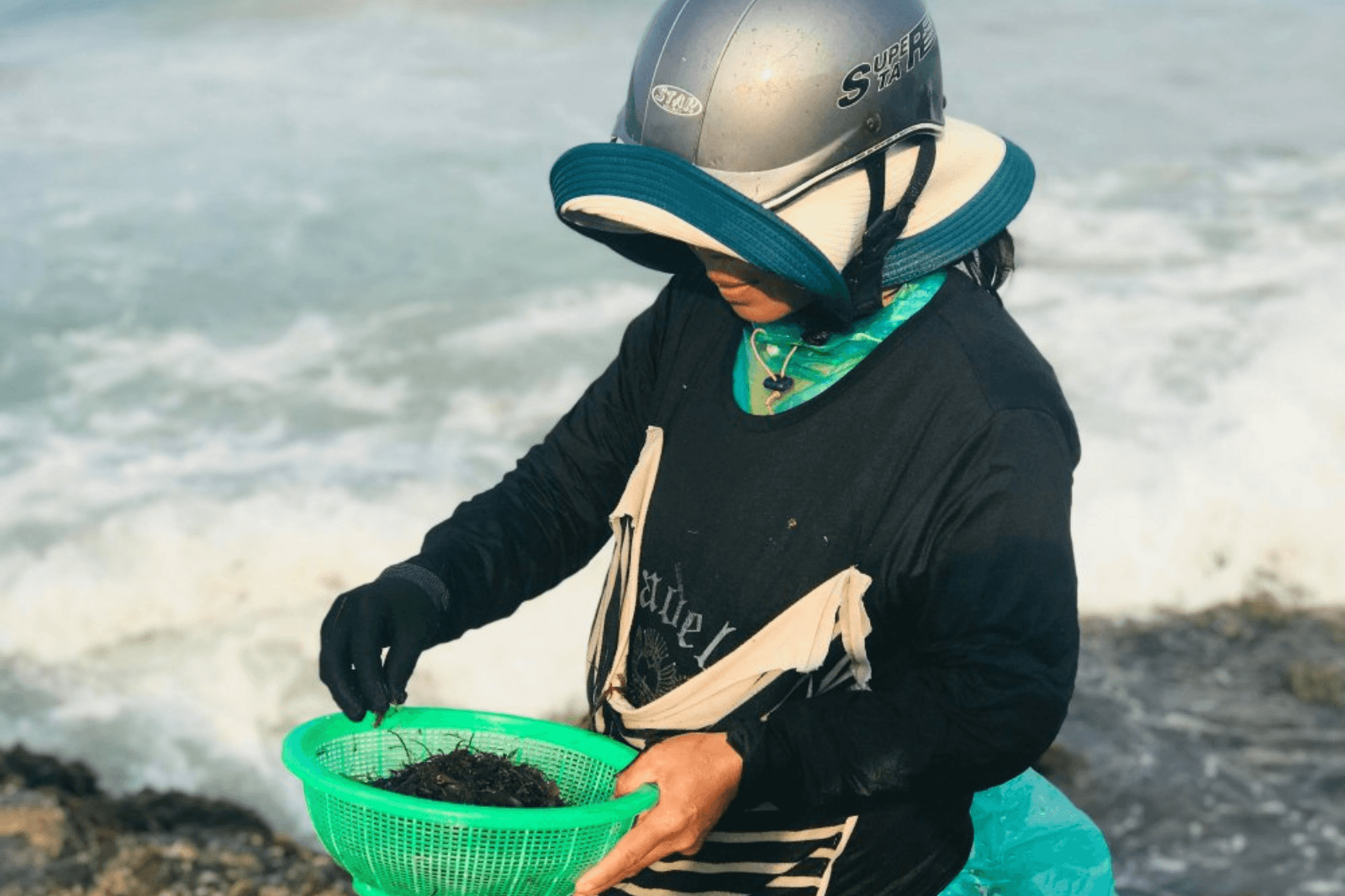Ảnh: Người dân ra biển tìm rong để làm bánh đúc rau câu