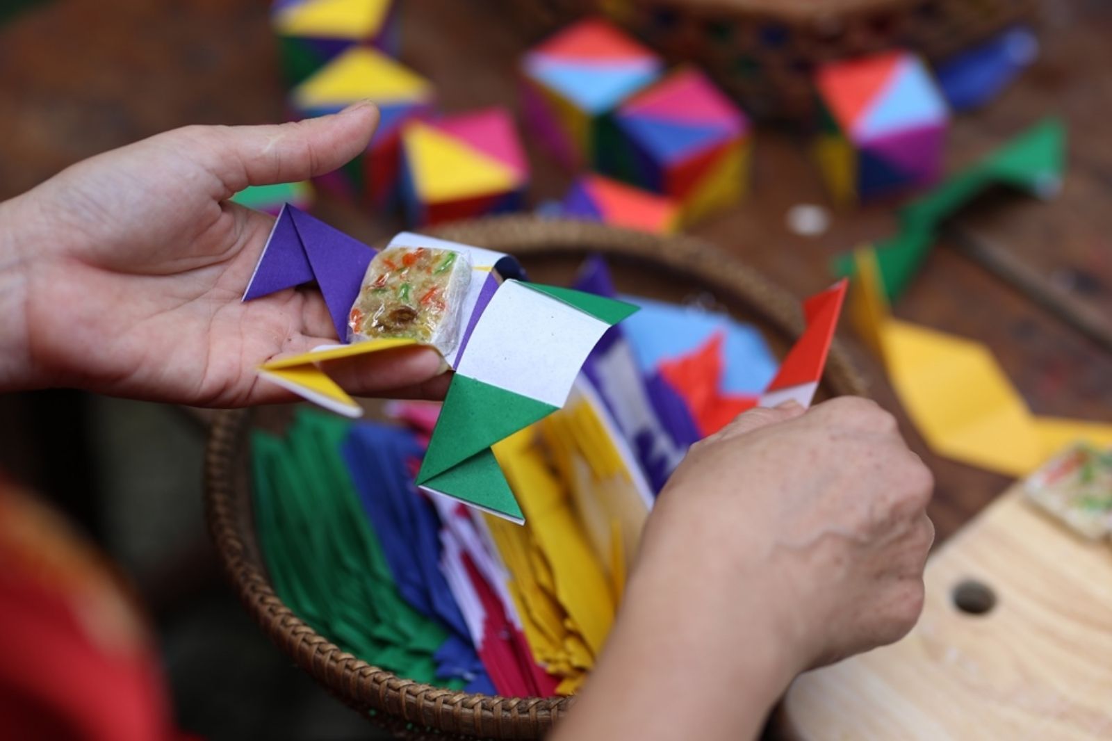Bánh pháp lam Huế, còn được gọi là bánh bó mứt, bánh ngũ sắc hay bánh lăn, là một món bánh cổ truyền đặc trưng của ẩm thực cung đình Huế. Món bánh này không chỉ là thức ăn mà còn là một tác phẩm nghệ thuật, với vẻ ngoài rực rỡ sắc màu và hương vị ngọt thanh, dẻo bùi khó quên. Bánh được làm từ bột nếp kết hợp với các loại mứt trái cây, sau đó được gói trong hộp giấy thủ công theo lối ngũ sắc – đỏ, vàng, xanh, tím, trắng, tạo nên sự hài hòa và bắt mắt.
