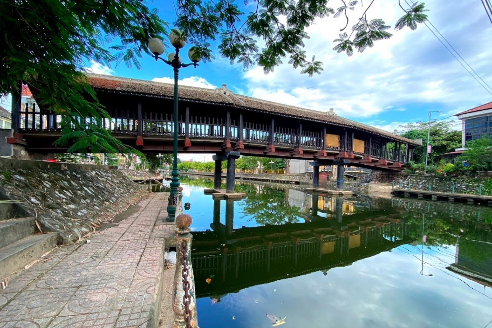 - Kiến trúc: Cầu được xây dựng theo kiểu “Thượng Gia Hạ Kiều” (tức trên là nhà, dưới là cầu), một lối kiến trúc truyền thống đặc trưng của vùng đồng bằng Bắc Bộ, gợi lên hình ảnh quen thuộc của ngôi đình làng.