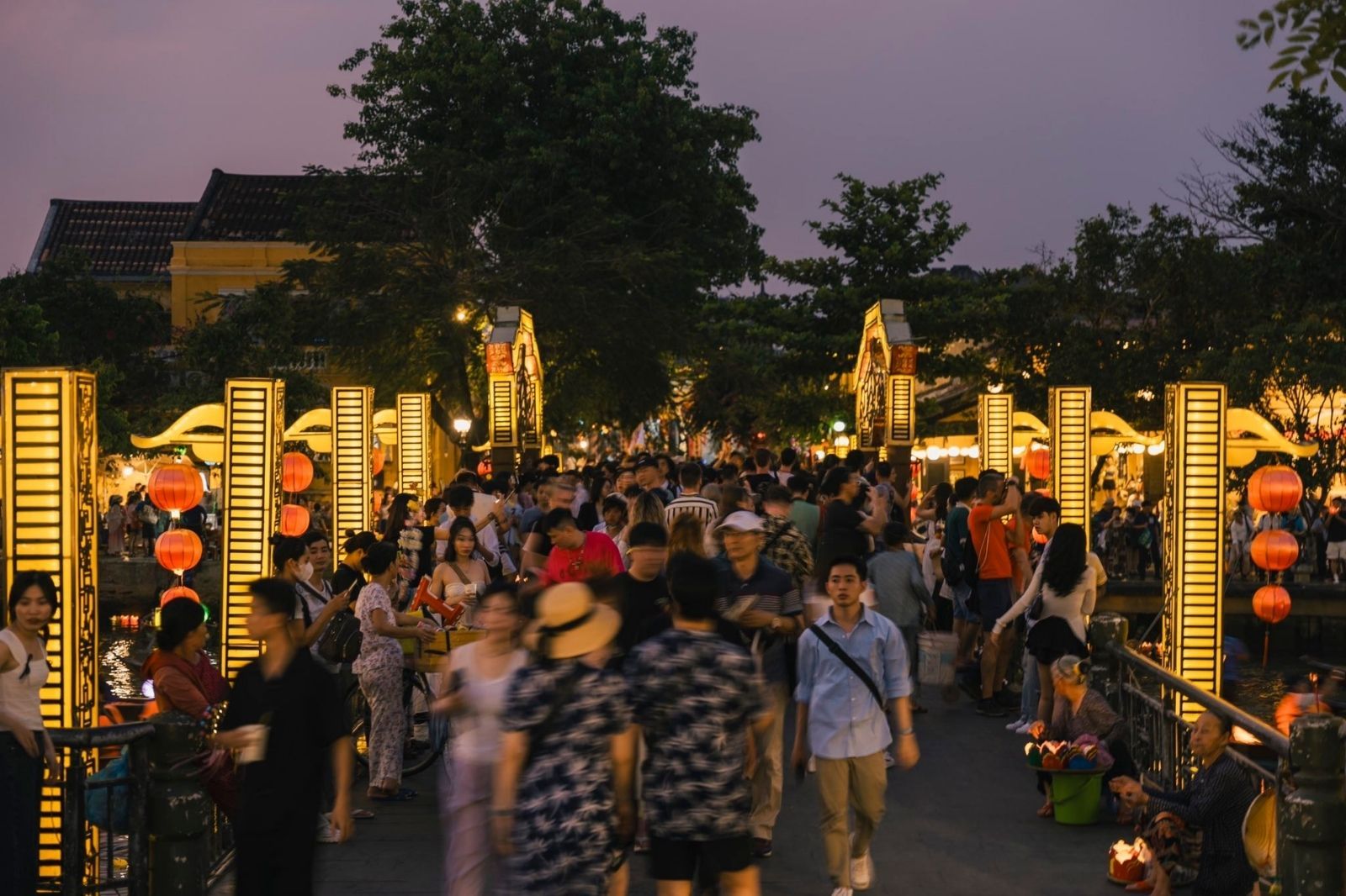 Tản bộ giữa lòng phố cổ vào buổi tối là trải nghiệm mang tính biểu tượng khi nhắc đến Hội An. Hành trình có thể bắt đầu từ Chùa Cầu (Cầu Nhật Bản) – công trình kiến trúc đặc trưng và là biểu tượng văn hóa của thành phố. Từ đây, bạn sẽ dễ dàng cảm nhận được không gian ấm áp, cổ kính khi hàng trăm chiếc đèn lồng thắp sáng khắp các tuyến đường, tạo nên khung cảnh huyền ảo đầy mê hoặc.