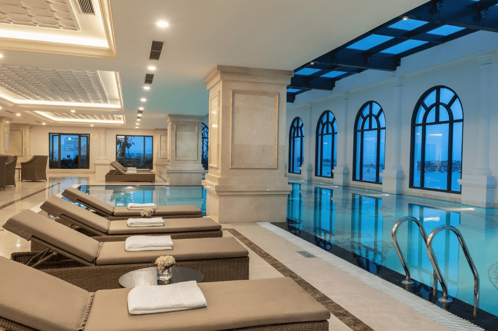 Melia Vinpearl Quảng Bình tự hào sở hữu hồ bơi 4 mùa duy nhất tại Quảng Bình với diện tích gần 200m², mở cửa từ 5:30 đến 21:00. Hồ bơi trong nhà được thiết kế với trần kính mở, cho phép du khách vừa bơi lội vừa ngắm nhìn cảnh sắc thành phố và sông Nhật Lệ từ sáng sớm đến hoàng hôn lung linh. Đây là nơi lý tưởng để thư giãn và tận hưởng không khí trong lành bất kể thời tiết.