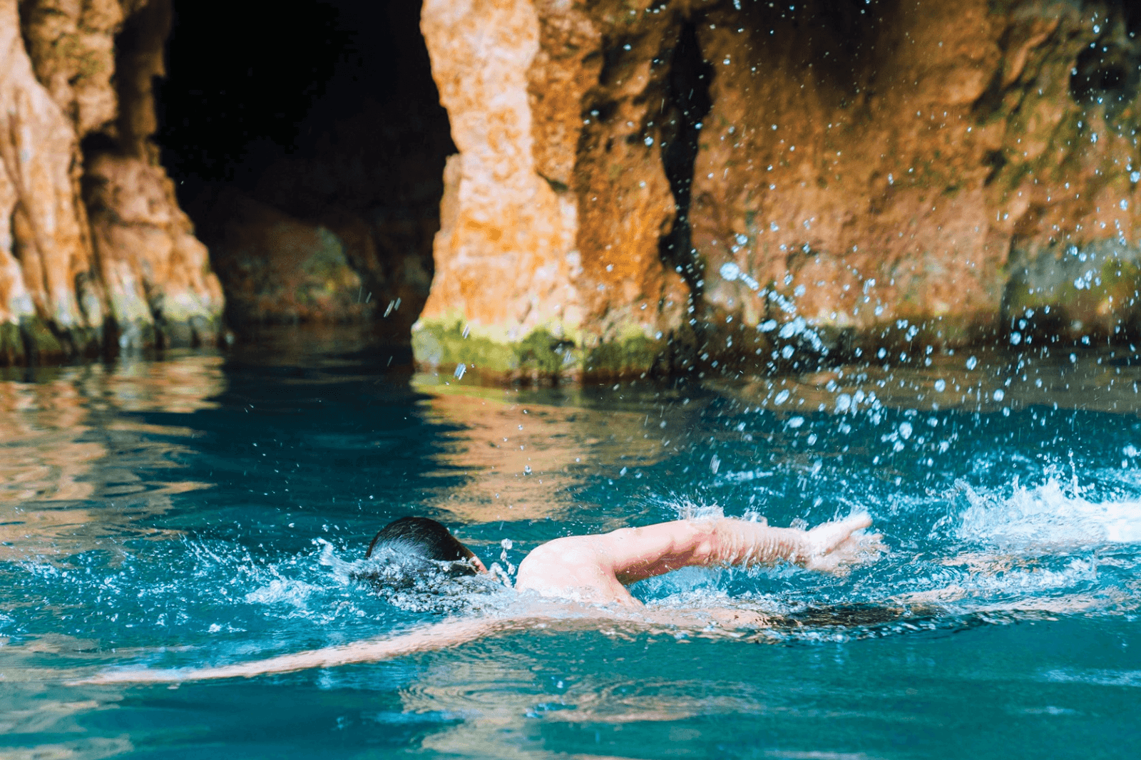 Bơi trong Hang Thủy Cung: Dòng nước ngọc bích mát lạnh, ánh sáng lấp lánh từ vòm hang, như dẫn bạn vào một thế giới khác.