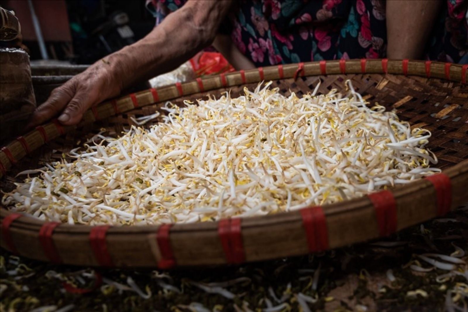 Khi đậu đã chọn xong, người ta ngâm qua đêm cho nở căng. Không vội, không gấp. Đậu được đổ vào rổ tre, rổ nhựa hoặc những thùng nhôm dày – gọn nhẹ, dễ xếp chồng. Trước đây, cả làng dùng lu gốm, đậy bằng bao tải, phủ rơm vừa giữ nhiệt, vừa giữ ẩm tự nhiên. Đến nay, thứ rơm sau mùa gặt ấy vẫn là “bí quyết” riêng của giá đỗ Lam Thủy, giúp giá mọc đều, không thối, không đen, giữ đúng màu trắng ngần như sữa.