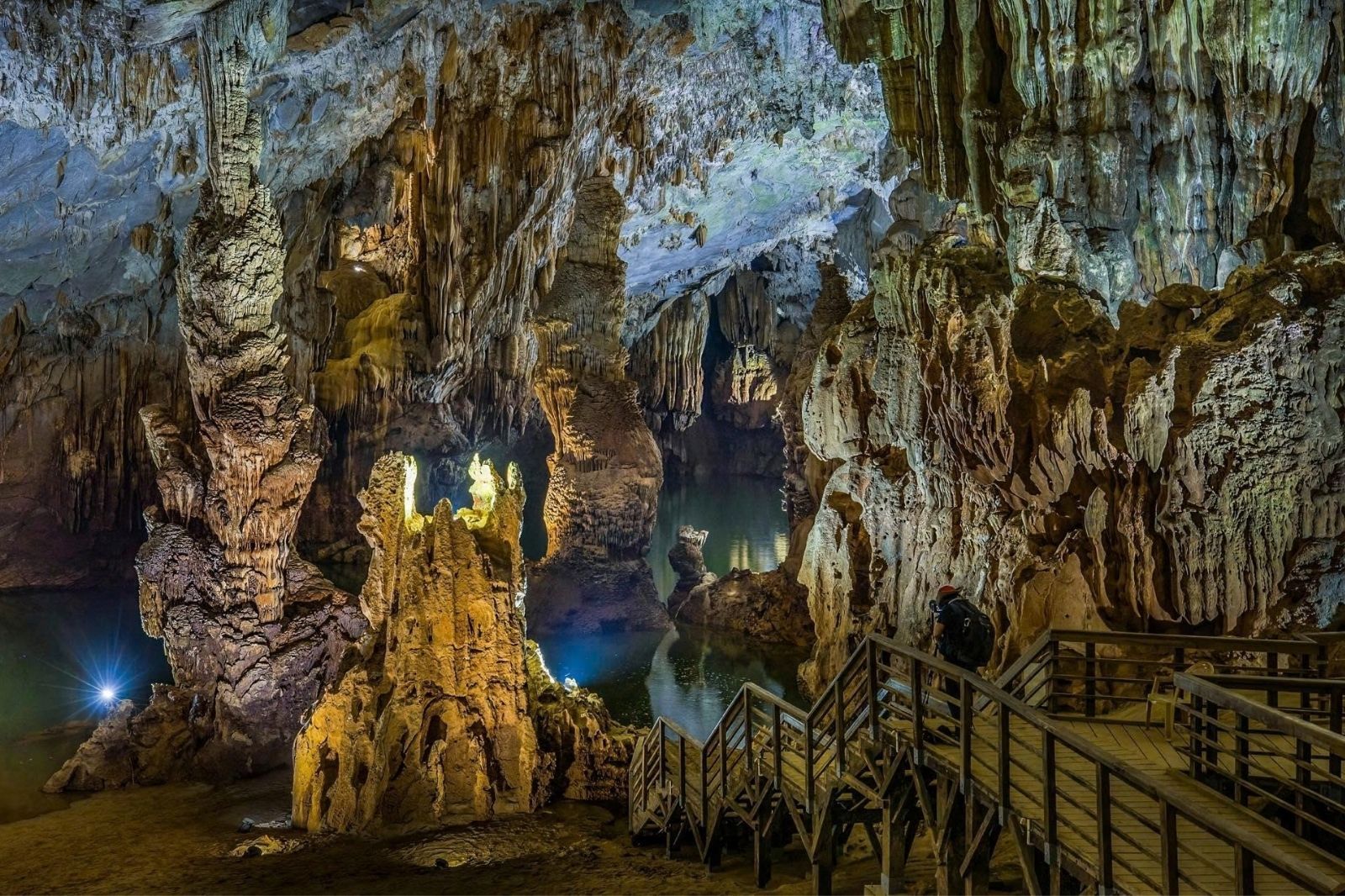 Ảnh: Du khách check-in bên trong động Phong Nha Ảnh: Các khối thạch nhũ với đa dạng hình dáng bên trong động Phong Nha
