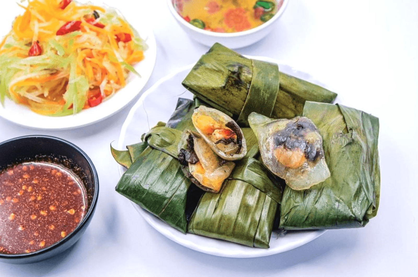 Bánh lọc – Bánh nậm (~20k - 40k/đĩa): Bánh lọc bọc tôm rim, bánh nậm mềm mịn với nhân tôm thịt, chấm nước mắm cay ngọt đậm đà.