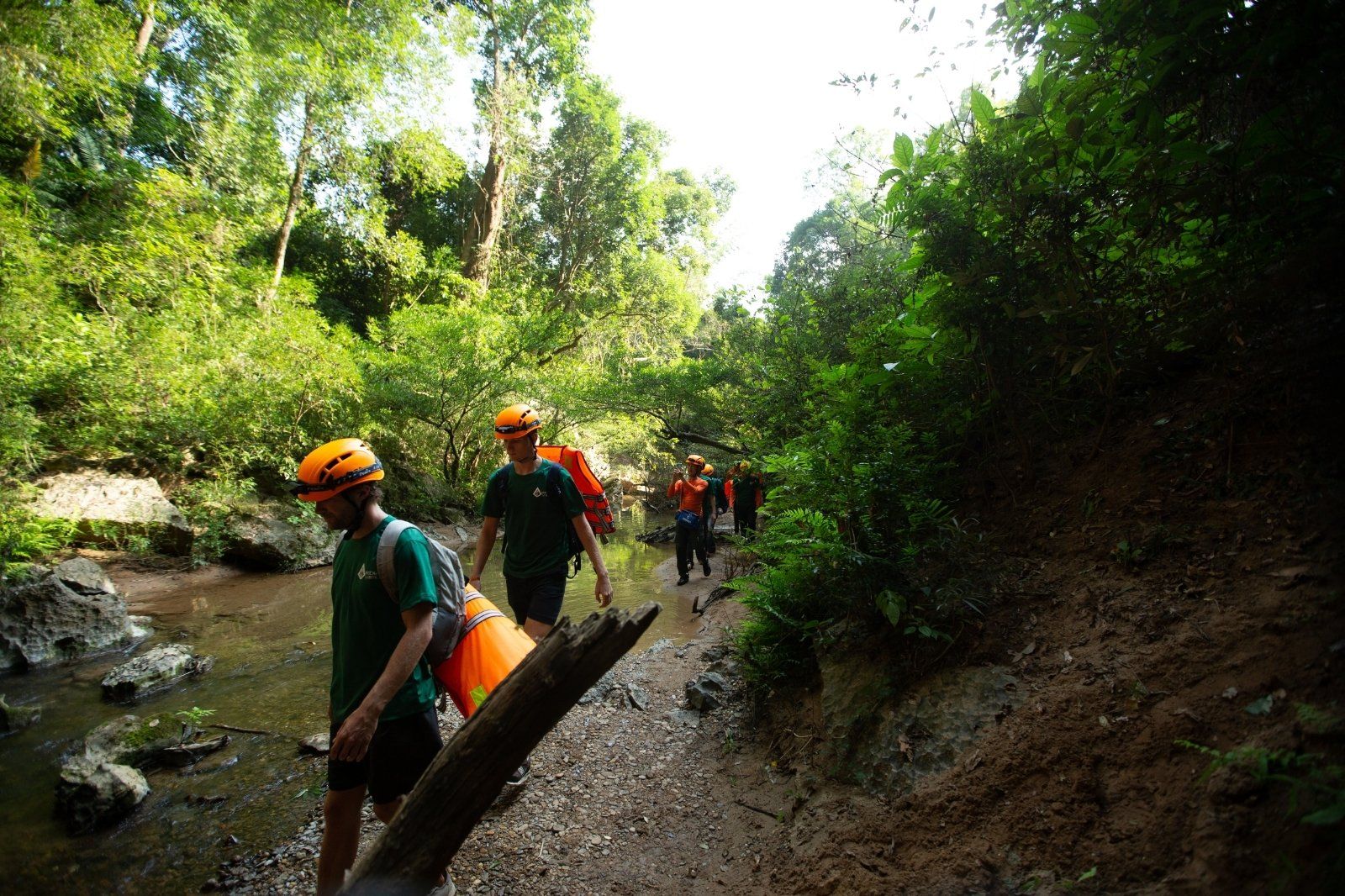 Để đến với thung lũng này, từ nhánh tây của đường Hồ Chí Minh, du khách phải lội bộ hơn 5 km đường rừng. Từ đây, chuyến trekking thực sự bắt đầu với những bước chân vượt qua đồi cỏ xanh mướt, rừng cổ thụ Dầu Rái và cổng trời – nơi bạn có thể chiêm ngưỡng toàn cảnh thiên nhiên hùng vĩ của vùng rừng núi miền Trung. Hành trình tiếp tục băng qua suối Tiên, dòng nước mát lạnh len lỏi giữa những tán cây rậm rạp, dẫn lối đến hang Nước Lặn một trong những điểm nhấn quan trọng của chuyến đi.